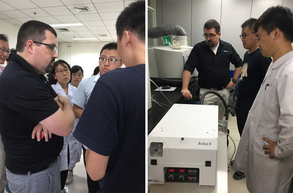 2017年7月24-28日,美國CETAC產(chǎn)品經(jīng)理Lawrence Jacob Herrington專程來華,在幾位利曼工程師的陪同下,先后走訪了國家食品安全監(jiān)控和風(fēng)險評估中心、清華大學(xué)分析測試中心及中科院南京地理與湖泊研究所等幾家用戶,對儀器使用情況進行了解,針對用戶提出的應(yīng)用問題給予解答。