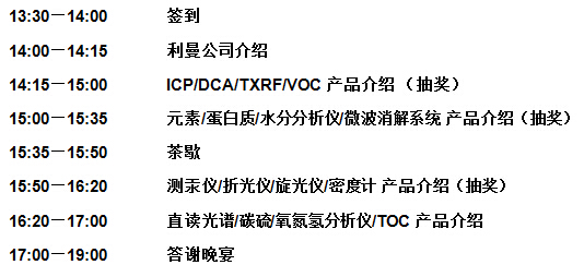 美國(guó)利曼公司多年來(lái)一直秉承“用戶滿意、技術(shù)創(chuàng)新、產(chǎn)品優(yōu)良”的企業(yè)宗旨,為實(shí)驗(yàn)室不斷提出眾多完善的解決方案。為了和客戶更好的進(jìn)行產(chǎn)品技術(shù)的溝通,我公司將于20141031日在沈陽(yáng)國(guó)際皇冠假日酒店(沈陽(yáng)市皇姑區(qū)黃河南大街88號(hào),024-86311111舉辦實(shí)驗(yàn)室儀器大型技術(shù)交流會(huì),屆時(shí)將有ICP、測(cè)汞儀、TOC、吹掃捕集濃縮儀、水分分析儀、元素分析儀、蛋白質(zhì)分析儀、微波消解系統(tǒng)、酸純化器、折光儀、旋光儀、密度計(jì)等產(chǎn)品展示。美國(guó)利曼公司工程師將會(huì)提供專業(yè)的儀器講解,熱切期待您的參加!
